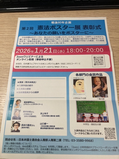 ![]() 12月23日情報 賛同者の皆様 3件お知らせします。ご協力を! ★①【要請 】2.11集会の情報 ★②【募集】3・7脱原発全国集会出店者 ★③ 1/21憲法ポスター展表彰式 ~~~~~~~~~~~~~~~~ 平和を実現するキリスト者ネット http://cpnet.bona.jp 〒112-0002 文京区小石川2-17-41 富坂キリスト教センター2号館 304号室 e-mail:cpnet@mica.dti.ne.jp> ℡&Fax:03-3813-2885 ~~~~~~~~~~~~~~~~ 添付資料 出店者募集 出店申込書 ★①【要請 】2.11集会の情報 > 2.11集会を計画中のみなさまへ > 平和を実現するキリスト者ネット(通称 キリスト者平和ネットhttps://cpnet.bona.jp/)毎月1000部発行しているニュースレター2月号に、各地の2.11集会案内のページを作りたいと企画しています。みなさまが計画しておられる2.11集会(建国記念の日に異議申し立て、あるいは信教・思想の自由を守る、平和を作り出すという趣旨のもので、キリスト者がなんらかの形でかかわっている集会)について、以下の項目について情報をお寄せいただけませんでしょうか。これによって、一人でも多くの人々の意識を喚起し、参加を呼びかけ、ネットワークを作るお手伝いができればと考えております。 > 締め切り 2026年1月10日 > 送り先 oshima@ncc-j.org (平和ネット運営委員会メンバー 大嶋) > なお、平和ネットのニュースレター掲載について主催者の許可をもらってから情報提供してくださいますよう、お願いいたします。発行日は2月5日です。どうぞよろしくお願いいたします。 > 2025年12月23日 > 代表 平良愛香、事務局 吉田瑠都 > お知らせいただきたい事項(以下の記載のあるチラシ添付でもかまいません) > ・集会名 > ・主催 > ・集会日時 > ・集会場所 > ・問い合わせ先 > ・その他、必要事項があれば。 ★②【募集】3・7脱原発全国集会@代々木公園 出店者 3.7脱原発集会でのブース出店者の募集を開始します。 様ざまなブース出店で、にぎやかに、楽しい集会となるよう、 盛り上がっていきましょう! ★③ 1/21憲法ポスター展表彰式 戦後80年企画 第2回 憲法ポスター展 表彰式 1月21日(水)15:00~20:00 Zoom https://www.nichibenren.or.jp/ 問合せ先:日本弁護士連合会人権部人権第二課 03-3580-9968 |